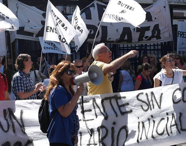 “Roberto Baradel enfrenta la encrucijada que le plantea la opositora lista Multicolor, que propone una mayor radicalización de la protesta. Si bien la Multicolor sólo maneja nueve de las 135 distritales, el dato relevante es que en las elecciones del año pasado duplicó la cantidad de seccionales. Desde la dirección de Suteba se advirtió que aun en las seccionales propias las propuestas apuntaban a medidas más drásticas que en otras ocasiones” (La Nación, 19-3-14).