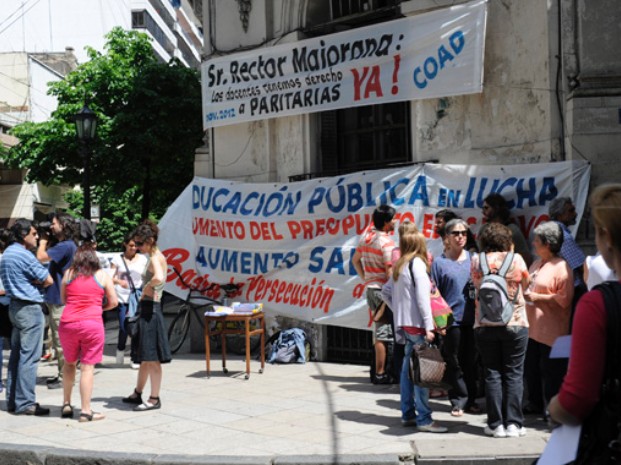 En el día de hoy 9/06 los docentes de la Universidad Nacional de Rosario agrupados en COAD, han votado por aplastante mayoría llevar adelante un paro por tiempo indefinido ante la falta total de propuesta salarial por parte del gobierno nacional. Desde el comienzo de año los trabajadores docentes vienen exigiendo la reapertura de paritarias, ya que el ajuste de enero y la escalada inflacionaria han pulverizado literalmente sus salarios, congelados desde hace meses. Mediante la lucha consiguieron reabrir la negociación, pero se encontraron con que una vez más el gobierno no tiene nada para ofrecerles! Ante esta burla y esta provocación, han votado en el día de la fecha llevar adelante esta medida de fuerza. Con mucha bronca todos vemos día a día que el gobierno K (que otrora se dijo «nacional y popular) honra pagos millonarios con el Club de París (gesto aplaudido por la derecha liberal más recalcitrante como Macri), y que al mismo tiempo militariza la fábrica Gestamp, persigue a los luchadores que defienden sus puestos de trabajo, y hasta llega a desconocer la conciliación obligatoria de su propio ministerio de trabajo para defender a las patronales. Este gobierno es el mismo que hoy no tiene nada para ofrecerle ni a la educación pública ni a sus trabajadores docentes.