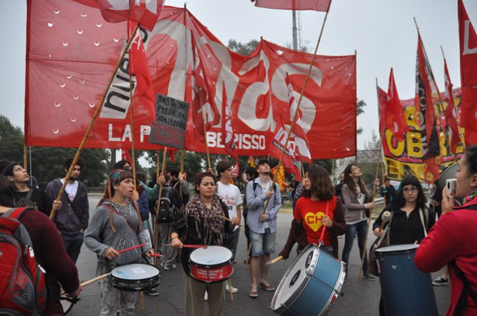 El paro nacional se hizo sentir de manera activa en la ciudad de La Plata con un piquete impulsado desde el Nuevo MAS, el PO y el PTS, desde la 7 hs. de la mañana en la rotonda de 120 y 32, acceso a la autopista Buenos Aires-La Plata. También contó con una importante delegación de docentes del SUTEBA, que en el marco de la lucha histórica del 2014, se fueron politizando y hoy se sumaron al paro activo al canto “somos los trabajadores luchando contra el impuesto al salario”.
