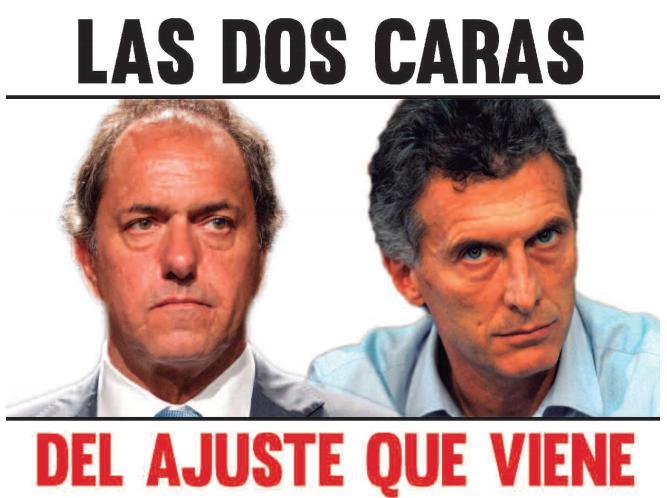 En síntesis: ambas vías del ajuste, sea que la ensayen Scioli o Macri, llevan al mismo lugar: a un deterioro de las condiciones de vida de los trabajadores; a una caída del salario real por la vía de una devaluación brusca de la moneda, o por la vía de un techo estricto a los aumentos salariales mediante un pacto social.