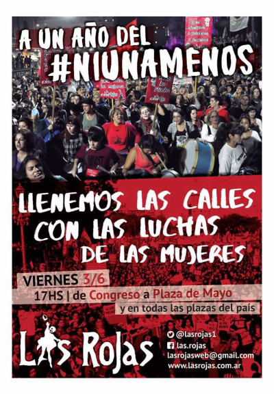 Para enfrentar los femicidios y la violencia, para frenar las redes de trata y explotación sexual, para conquistar el derecho al aborto y para que no seamos las mujeres las que paguemos el ajuste, te invitamos a marchar este viernes 3 de junio junto a Las Rojas. Que este #NiUnaMenos nos encuentre a todas en las calles y sirva para unificar y engrandecer al movimiento de mujeres, para que se transforme en un espacio de referencia para cada vez más compañeras. ¡Parémosle la mano al gobierno reaccionario de Macri! ¡Que se escuche bien fuerte la voz de las mujeres que luchan!