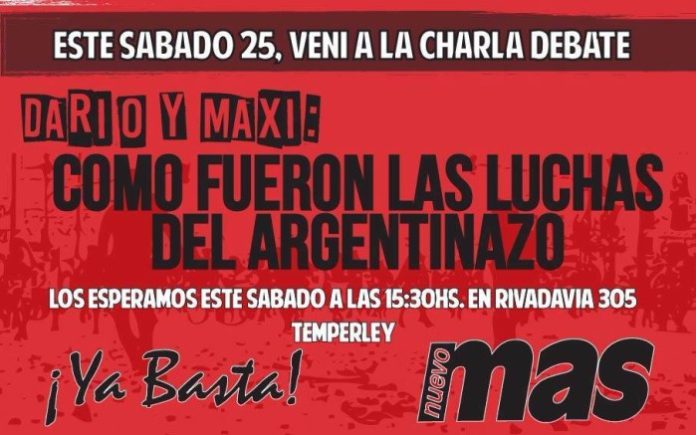 El pasado 26 de junio se cumplió un nuevo aniversario de la Masacre de Avellaneda donde mataron a Maximiliano Kosteki y DaríoSantillán, bajo las órdenes de Eduardo Duhalde y Felipe Solá quienes habían organizado y ordenado la represión.Desde la regional sur aprovechamos la oportunidad para realizar una charla con los compañeros que se vienen acercando a nuestro partido, y poder trasmitir las experiencias y debates que se fueron gestando al calor de la rebelión popular del 2001.