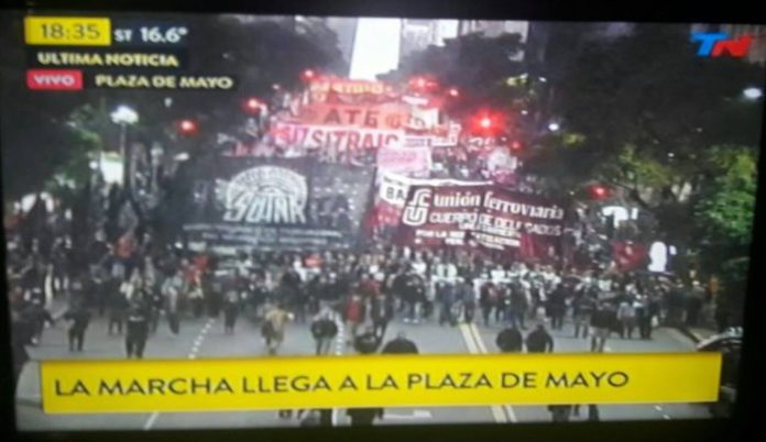 El pasado martes 9 de agosto se realizó una marcha a la Plaza de Mayo en rechazo a la persecución y judicialización de los ferroviarios del Sarmiento, contra el tarifazo y el ajuste del gobierno de Macri, exigiendo a las centrales sindicales que dejen de darle tiempo al gobierno y convoquen a un paro general.