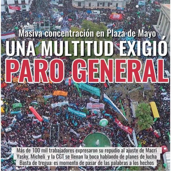 Muchos sectores de trabajadores tienen sus fuertes críticas a quienes convocaron, pero no obstante esto, se delimitaron de los mismos y salieron a la calle a luchar. El PTS por su parte apostó por no luchar. Desde el Nuevo MAS, en sintonía con los sectores antiburocráticos que quieren derrotar al gobierno de Macri, tuvimos una política diametralmente opuesta. Desde un principio nos delimitamos de los convocantes y no firmamos ningún documento, pero participamos de la misma confluyendo con los miles de trabajadores que salieron a luchar contra el gobierno ajustador y reaccionario de Cambiemos, contra el ajuste, el tarifazo, los despidos y la persecución a los luchadores exigiendo “Basta de tregua, la CGT y las CTA deben convocar a un paro general y a un plan de lucha”.