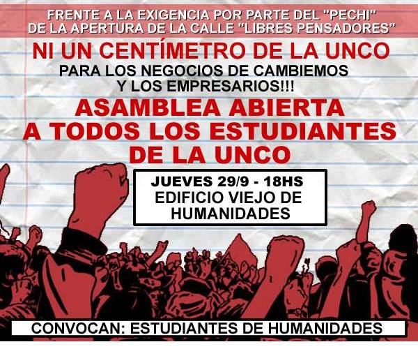 A los estudiantes y el pueblo en general: queremos dar a conocer la situación de conflicto que existe entre la Universidad Nacional del Comahue y el intendente de Neuquén Horacio “Pechi” Quiroga.