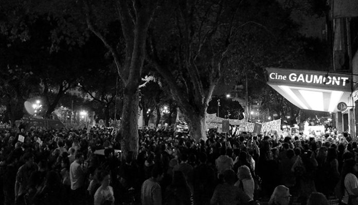 Desde ArteInsurrección, agrupación de artistas en lucha del Nuevo MAS, fuimos parte de la movilización que comenzó en la Escuela Nacional de Experimentación y Realización Cinematográfica (ENERC) y culminó en el cine Gaumont. Todos los que nos sentimos parte de la comunidad audiovisual ya sea como estudiantes, docentes realizadores, actores, técnicos y trabajadores del Instituto tomamos las calles para que nuestros reclamos irrumpan en la apertura del festival BAFCI. El gobierno reaccionario de Macri representado por el Ministro de Cultura Pablo Avelluto, decidió cancelar las funciones del día para quitarle impacto a la medida de lucha, pero lejos de eso, ¡fuimos miles los que nos hicimos presentes para gritar bien fuerte que el cine es nuestro y no se toca!