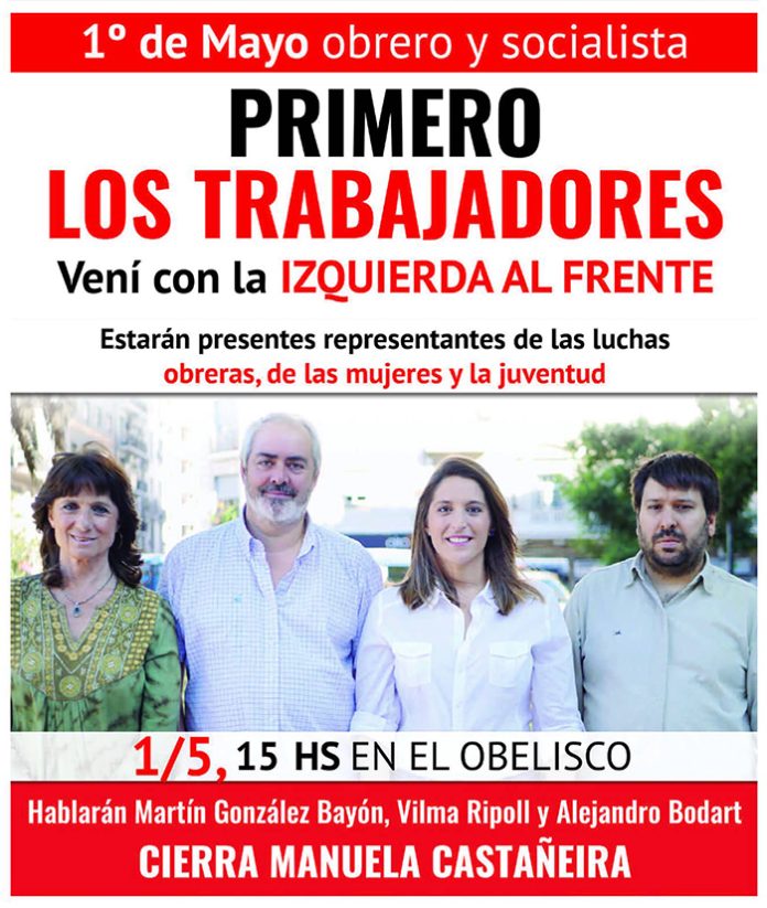 Porque los desafíos y las posibilidades son inmensos, invitamos a toda nuestra militancia, simpatizantes y familiares a participar del acto del 1° de Mayo en el Obelisco, acto en el cual se expresarán delegaciones de las actuales luchas obreras, juveniles, docentes y del movimiento de mujeres y que tenemos el orgullo de anunciar que será cerrado por nuestra compañera Manuela Castañeira, la principal figura política de La Izquierda al Frente por el Socialismo.