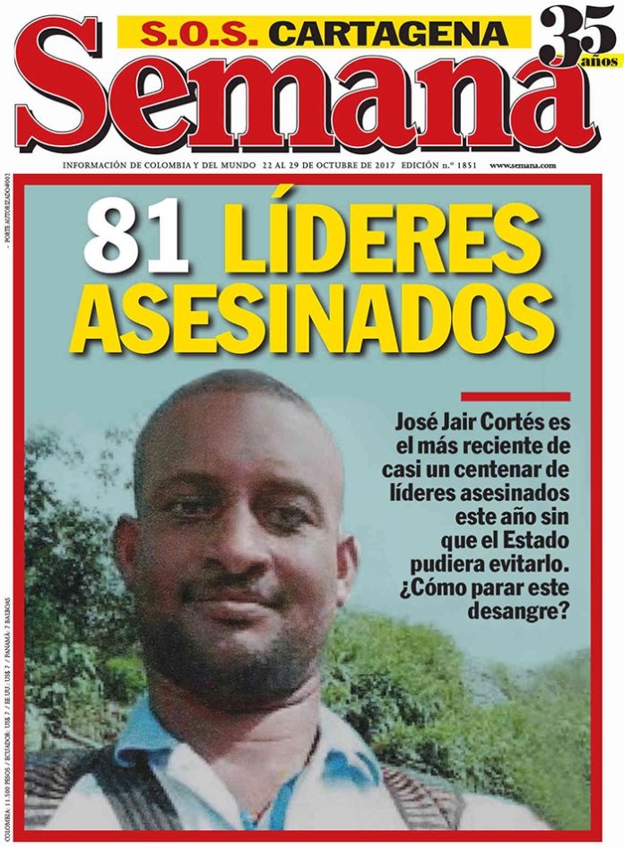“Desde hace tres años –informa Clarín de Colombia (19/10/2017)– a Jair Cortés lo venían amenazando. Lo señalaban como ‘enemigo de la coca’, una situación que no solamente afrontan los líderes en Tumaco sino en varias regiones del territorio nacional. Jair siguió animando a las comunidades a montarse en el plan de la sustitución, a pesar de los signos negativos del incumplimiento del gobierno. Denunció las amenazas, pidió protección, pero fue asesinado.