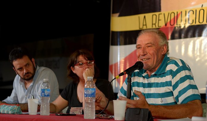 Yo en 1972 participé del Rocazo, cuando ya había pasado el Cordobazo, que también tiene que ver con la historia de la Revolución Rusa, porque ahí estaban las coordinadoras en el Cordobazo. Hubo una pelea que fue derrotada, cuando se dio el Viborazo con Onganía. Después, al tiempo, el efecto de la gran movilización semi insurreccional de Córdoba, el Rosariazo y el Rocazo provocan la caída de un dictador. Eso lo vivimos como que podíamos voltear presidentes y nada menos que dictadores. Lo comparábamos con la volteada al zarismo, con la caída de Nicolás. Esa cosa que vivimos en directo, esa vanguardia que a mí me tocó vivir estaba muy tironeada. Por ejemplo, la burocracia decía «son los bolches», ya nos comparaban con los bolcheviques. «Gracias» decíamos, yo. Stalin dijo «fue el PC», pero al PC lo pusimos a prueba en asamblea. Yo me acuerdo que en una asamblea uno del PC planteaba a los compañeros, yo todavía no era delegado y estaba 17 en la lista (después voy a explicar cómo llegué a ser delegado, que fue de casualidad y por poquito). El delegado era un compañero que se llamaba Ariel Montenegro, un delegado chileno que era del MIR. La burocracia decía que no podía ser delegado porque era chileno. Entonces, tenía que ir el segundo, el segundo era medio centrista. Entonces, este delegado dijo «yo quiero elegir al que me va a reemplazar y yo voy segundo, que sea ‘el panterita’». A mí me decían “el Pantera”: así empezó mi historia. Encima, el compañero, que era un gran dirigente, coincidía conmigo con lo de Trotsky, pero viene después del golpe de Estado de 1973, semi-escapado, realmente es el delegado, pero ya era 1975 y se venía 1976. La situación ahí venía tomando un ascenso tremendo, el movimiento obrero venía en ascenso, y empezaba a ponerse blanco sobre negro el problema de los que competían por esa vanguardia. Hoy mismo competimos entre nosotros, pero en ese momento estaba el PC que te decía «tomá, andá a Moscú y fijate lo que es»: te ganaban algunos compañeros. La intervención de ellos en la asamblea era siempre de colaborar con la patronal, de colaboración de clases. Yo digo esto ahora porque lo aprendí del trotskismo, en ese momento tenía un pedo en la cabeza, decía: «Este hijo de puta, ¿qué dice?». Y preguntaba y me decían: «este es un estalinista que mató a Trotsky». Listo, pensaba yo «si mató a Trotsky es un hijo de puta». Entonces me daba un pie para irme, habían 600-700 obreros, hablábamos desde arriba de las máquinas excavadoras y era tete a tete la cosa. Tuvimos otro problema que era la guerrilla y principalmente el ERP metido en esa obra. Yo les digo, el tironeo fue jodido para muchos, para mí por lo menos seguro, casi vuelco, pero ya había tenido el primer cuso de materialismo histórico. Carlitos Gadano lo daba, quien falleció hace ya dos años, en Roca. Ya tenía una herramienta más. Había uno que se llamaba el Dr. Andrés que en una huelga les dice a los compañeros que hay que dejarse de joder con la toma y colocarle una bomba en la oficina de Mendoza de la empresa para la que trabajábamos. Yo tenía experiencia, acá hacían eso y después echaban obreros. Yo le dije: «Bueno, vamos juntos y la ponemos. Pero después venimos los dos esposados a explicarle a los trabajadores. Porque vos hacés eso, después te vas y nosotros pagamos con despidos.» Pasó así con muchos delegados, se los llevaron con el fusil al hombro y no volvieron más. Esa fue la pelea más ingrata que tuvimos porque teníamos razón, pero no queríamos pasar como cobardes. A mí no me vas a enseñar a pelear. Entonces, caminar por esa línea fue muy difícil pero la suerte que tuvimos no fue suerte, fue estar con los pies pegados en la clase trabajadora, en esa vanguardia que no se trata solamente de mi propia historia. Yo era joven pero antes estaban los “petisos” Páez, los Gregorio Flores, todos los que vinieron antes. Veíamos los que venían de antes y los tomábamos como faro para ver cómo había que hacer las cuestiones, cómo había que avanzar con la clase trabajadora. Nos aferramos a ese problema, a esa cuestión. Nosotros discutíamos de frente, empezaron a abandonar la teoría algunos compañeros, ganamos a muchos, uno de ellos está acá, es Juancito Uribe, en esa época, para el PST, por la consistencia que teníamos para discutir con los compañeros. Por supuesto que teníamos que defender las consignas, la política, el programa todo a fuerza de que tenemos que perder compañeros. Recuerden la masacre de los compañeros de La Plata y Pacheco. Esa es la pelea contra los que nos decían bolcheviques, Rucci, bolcheviques. «Esto hay que aplastarlo»: como decía también el compañero Hernán con las mentiras en los diarios. Esa la sufrimos: «son los que vienen armados». Y se mandaban sus macanas: en Astarsa, cuando Massera, que después dio el golpe más adelante, fue a inaugurar un buque, tira la botella de champagne, creo que era así y cae la bandera argentina que dice: «FAR/Montoneros, son nuestros compañeros». Echaron a la mitad, uno de los delegados era nuestro, creo que el “cabezón” Paz, no me acuerdo bien y tuvo que tragar saliva porque eso no lo había discutido la asamblea, compañeros. Nosotros no teníamos que estar ahí, la asamblea había discutido otra cosa «que vengan a hacer sus cosas si total el poder no lo tenemos». Esa fue la forma en la que entendimos que también en Rusia, para expropiarle a la burguesía y hacer el socialismo primero tenemos que tener el poder, el poder sobre ellos, para quitarle lo que ellos tienen. Tenemos que tener poder, no «el poder», pero tenemos que tener poder y ganarlo y con eso llevar adelante nuestras reivindicaciones que por lo que escuché de Hernán fue arduo. He leído muchas cosas, incluso lo último que escribió el partido sobre la historia y es tremendo, los compañeros tuvieron que pasar por muchas cosas que en el moment