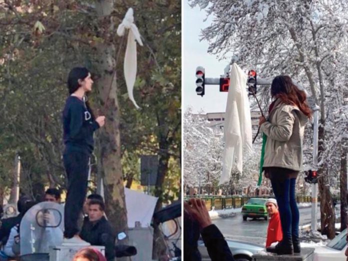 Las protestas contra el uso del Hiyab comenzaron el diciembre del año pasado, pero tomaron notoriedad en enero de este año cuando una activista llamada Vida Movahed se manifestó públicamente subiéndose a una caja de conexiones eléctricas de la Avenida Enghelab, con su velo atado a un palo haciéndolo flamear como una bandera. Movahed declaró haber llevado a cabo dicha acción incentivada por la campaña Miércoles Blancos, creada por la activista exiliada Masih Alinejad, que incentiva a las iraníes a que ese día de la semana lleven pañuelos blancos y se los saquen en público para denunciar la opresión del régimen islámico sobre las mujeres. Por su osadía, Vida estuvo detenida un mes pero su rebeldía prendió la mecha de un movimiento que empezó a crecer en otras mujeres que fueron replicando la misma acción; ya son veintinueve en total las detenidas por rebelarse ante el uso compulsivo de esta prenda con las que las mujeres deben cubrirse el cabello y los hombros para “no provocar a los hombres”.