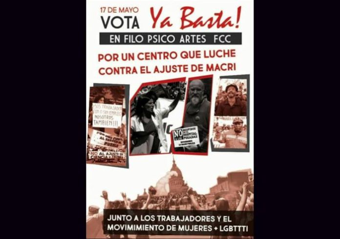 Desde la agrupación ¡Ya Basta! hicimos un llamado público a todas las organizaciones de la izquierda independiente y clasista a conformar frentes que sirvan al conjunto del movimiento estudiantil. Finalmente, por responsabilidad del FIT, esa unidad no fue posible, y también nos expresamos públicamente repudiando los métodos de calumnias con los que se despacharon contra nuestra organización. Con los resultados finales de la elección, observamos que hubo una Facultad que pudo haber revertido el balance electoral de una elección conservadora: en la Facultad de Filosofía y Humanidades, los votos de la izquierda en su conjunto demuestran que peleando en unidad, pudimos disputarle de igual a igual la conducción a la agrupación kirchnerista La Bisagra. Por responsabilidad de las agrupaciones que integran el FIT y por la agrupación CAUCE se dejó pasar una oportunidad importantísima, la de tener un Centro que contribuya e impulse la organización del movimiento estudiantil frente al macrismo. Lamentablemente, La Trinchera –PTS, CAUCE, PO e IS- jugó a favor de La Bisagra, de la burocracia estudiantil, al negarse a generar la más amplia unidad de lxs que luchan.