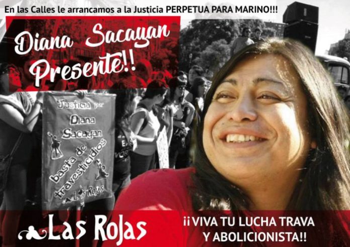 Las Rojas estuvimos presentes y seguiremos, en cada instancia, para que se haga justicia por Diana. Que se reconozca que fue travesticidio. Exigimos reglamentación y aplicación inmediata del cupo laboral trans. Trabajo genuino, educación y salud para todas. ¡Basta de homolesbotransfobia!