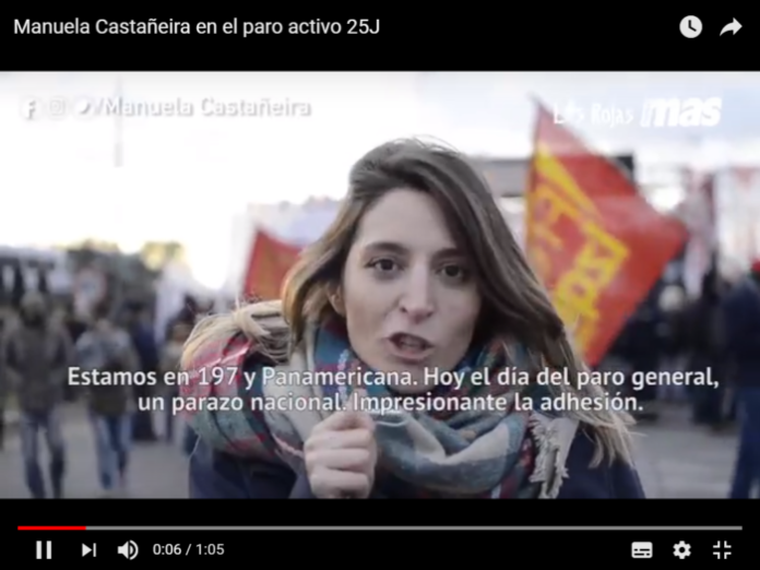 InicioSituación NacionalManuela Castañeira en el 25J - Paro general Manuela Castañeira en el 25J – Paro general Por Redaccion 26/06/2018 Editorial SoB 480 | El 8A frente al Congreso ¡Seamos millones! Editorial SoB 479 | Milicos en la calle nunca más Editorial | Derrotemos el acuerdo de Macri y el FMI – Un ajuste brutal que arranca por el Estado Editorial | Un rumbo de colisión social Editorial | Ante las crisis política y económica – Macri fuga hacia adelante Editorial – ¿Cómo seguir después del paro general? (Editorial) La crisis del gobierno – Mirando el abismo de reojo FacebookTwitterWhatsApp