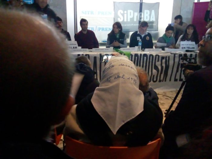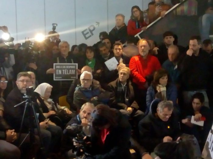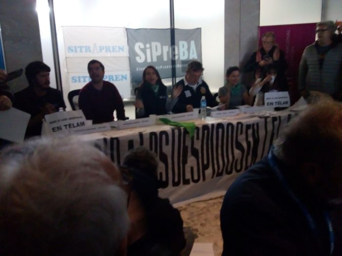 Los trabajadores de la Agencia Télam realizaron el día de hoy una conferencia de prensa en el edificio de la calle Belgrano para difundir su pelea contra los despidos y el vaciamiento.