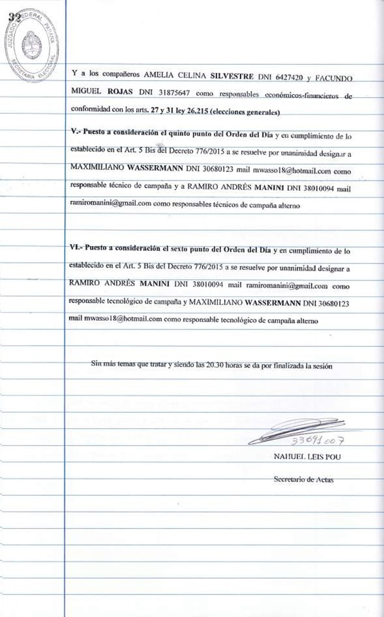 Acta Congreso Movimiento Al Socialismo de la Provincia de Entre Ríos