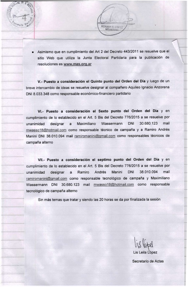 Acta Congreso Movimiento Al Socialismo de la Provincia de Entre Ríos